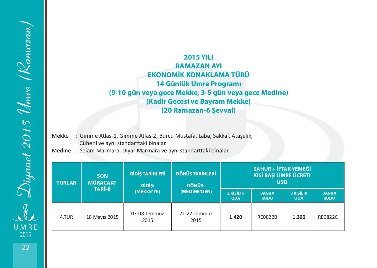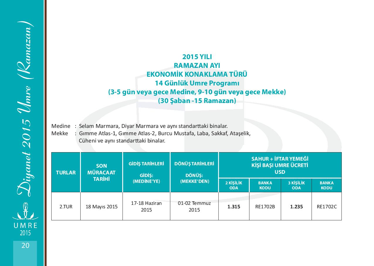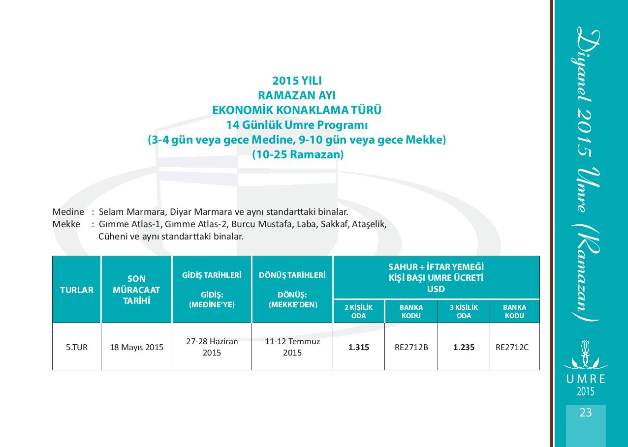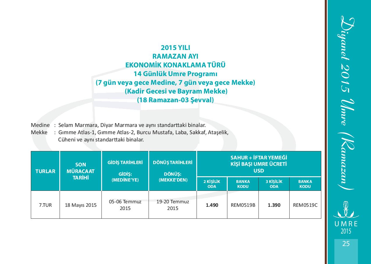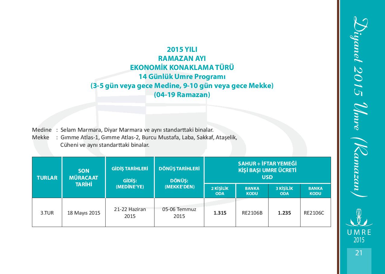 2015 yılı Ramazan Umre Fiyatları 2015 yılı Ramazan Umre Fiyatlarını Aşağıdan İnceleyebilirsiniz. Kategori: UMRE Etiketler: 2015 yılı ramazan umre fiyatları