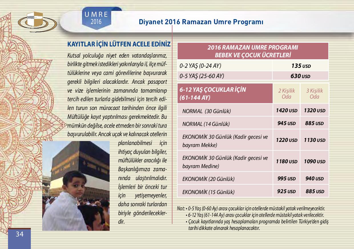 2016 yılı Ramazan Umresi Turları ve Fiyatları Diyanet İşleri Başkanlığı Tarafından Açıklanmıştır.