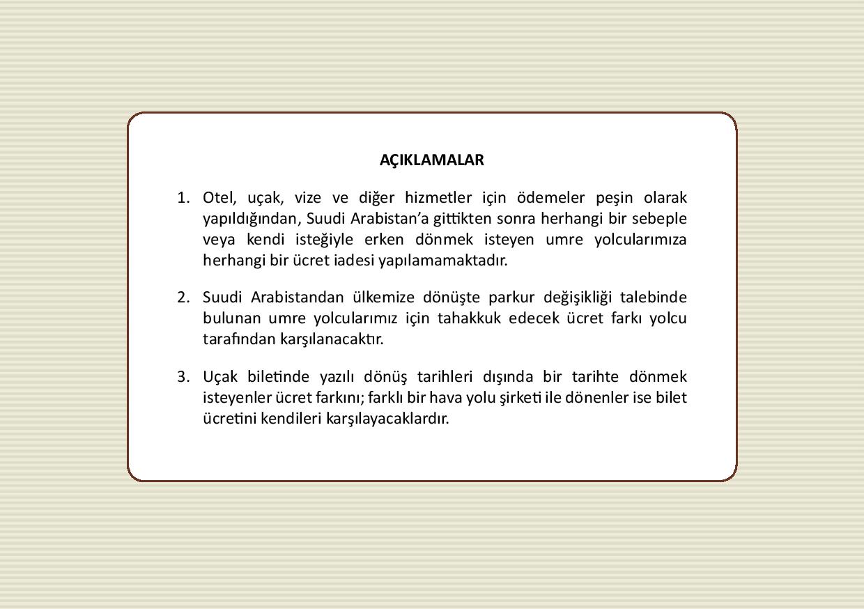 bulunan umre yolcularımız için tahakkuk edecek ücret farkı yolcu